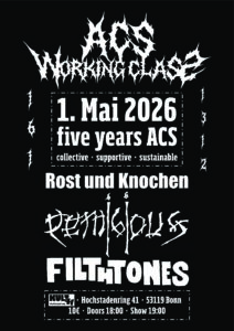 Fünf Jahre ACS – Soliparty für euren kollektiven Lieblingscopyshop im Kult 41 in Bonn. Bands, Drinks und Merch vom Allerfeinsten.